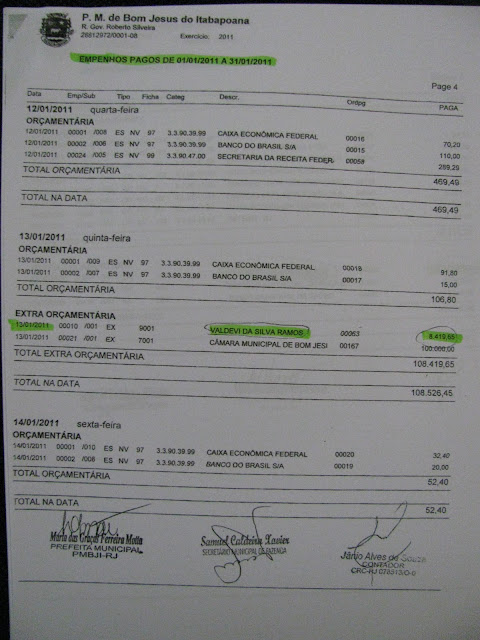 Entretanto esse vereador/servidor recebe repasses da prefeitura que somando o montante total representa uma média de R$ 8.000,00/mês referente ao SIAFEM (Sistema de Administração Financeira para Estados e Municípios) conforme as cópias em anexo de parte dos repasses efetuados a ele, na ocasião da denuncia ao MP, o promotor ficou apavorado com o fato desse sujeito ter remuneração superior ao de um promotor de justiça.
